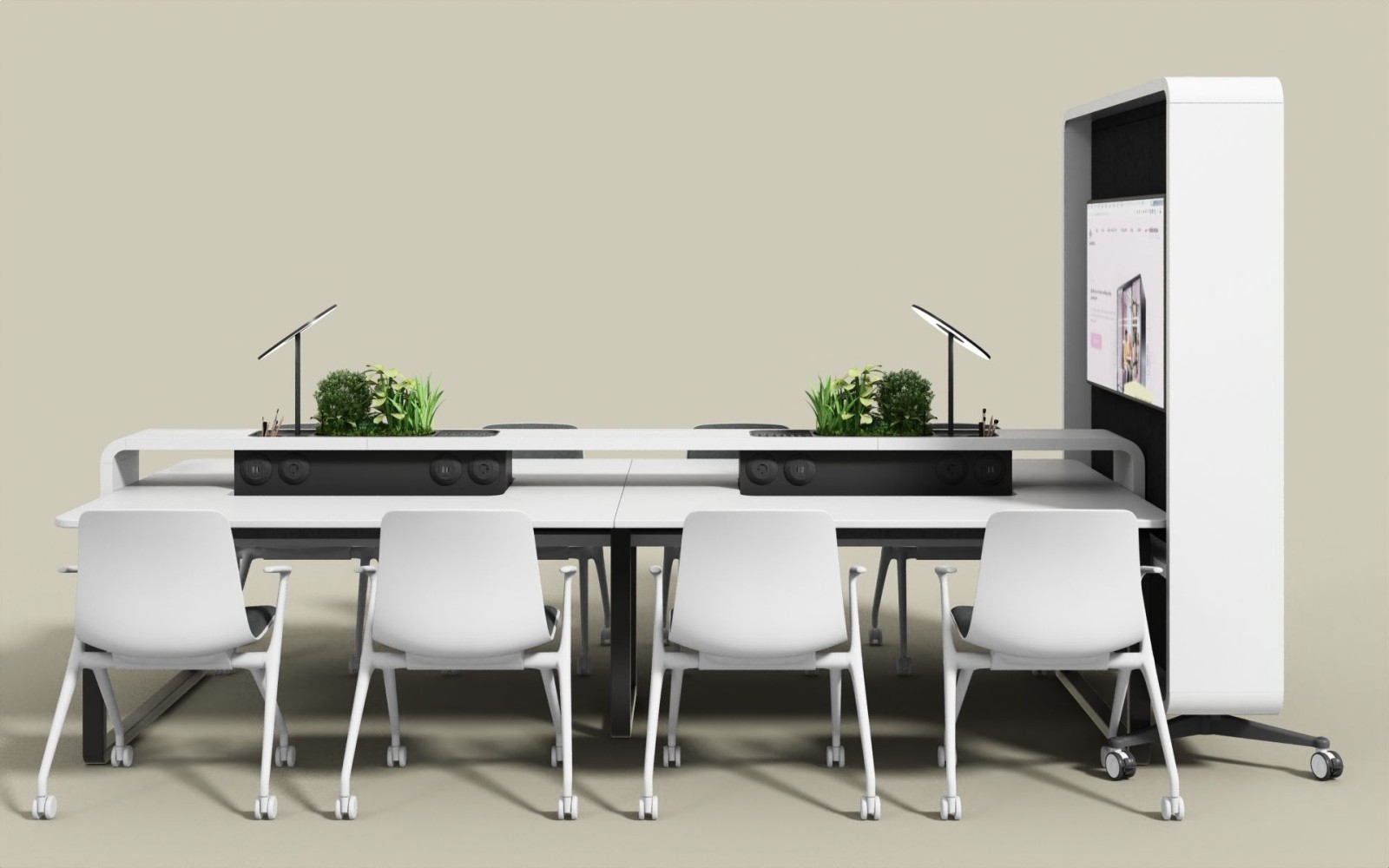 Vergadermeubilair is van grote invloed op de efficiëntie en het succes van uw vergaderingen. Wij creëren inspirerende en energieke vergaderomgevingen die een actieve en productieve houding stimuleren. Van comfortabele meubels tot optimale akoestiek en de juiste audioapparatuur: alles wordt zorgvuldig afgestemd om uw vergaderingen soepel en effectief te laten verlopen. Op basis van uw specifieke wensen ontwerpen wij een vergaderruimte die perfect aansluit bij uw doelen, zodat elke sessie een succes wordt.