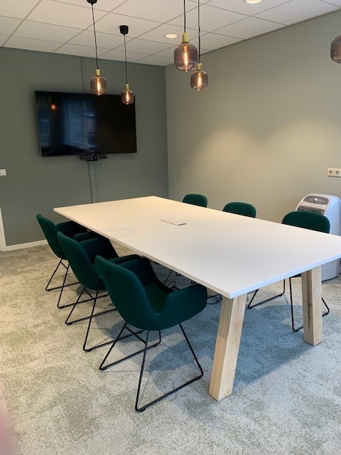 Dit hebben we gerealiseerd met de Hybrid vergadertafel en de Daisy stoel van Markant.