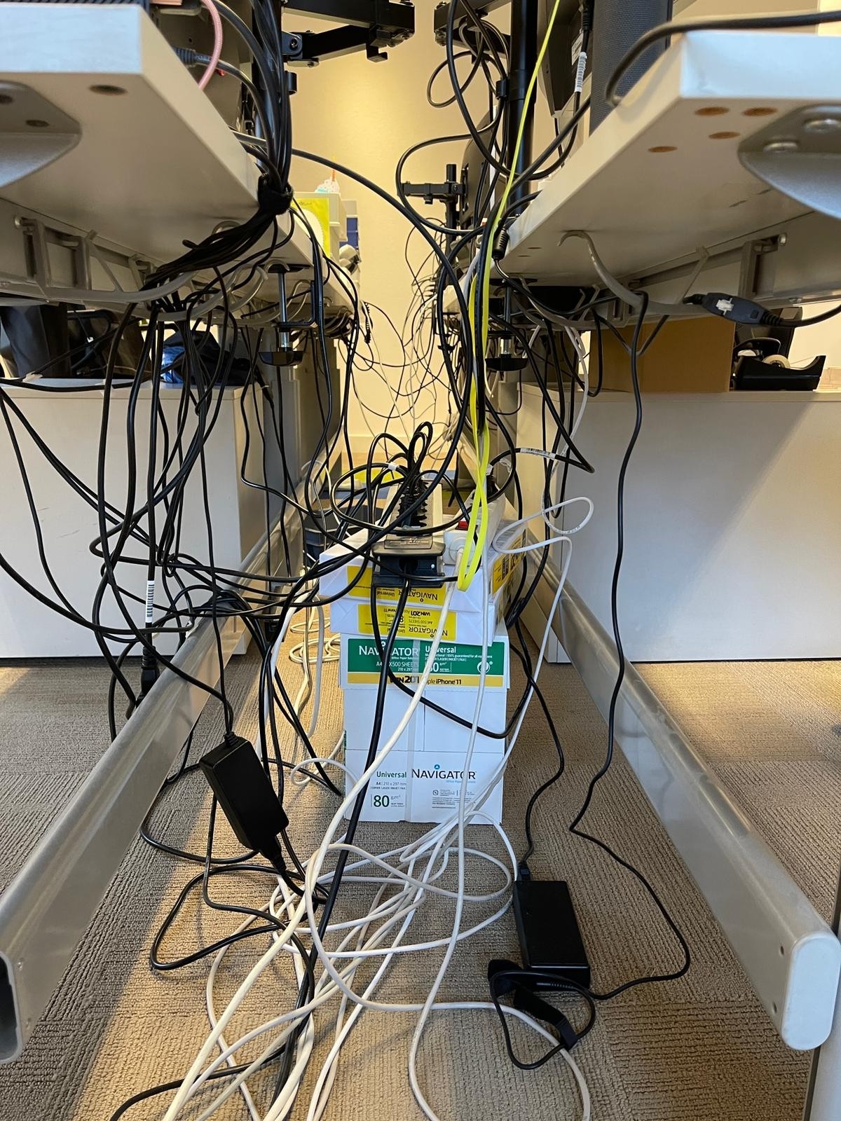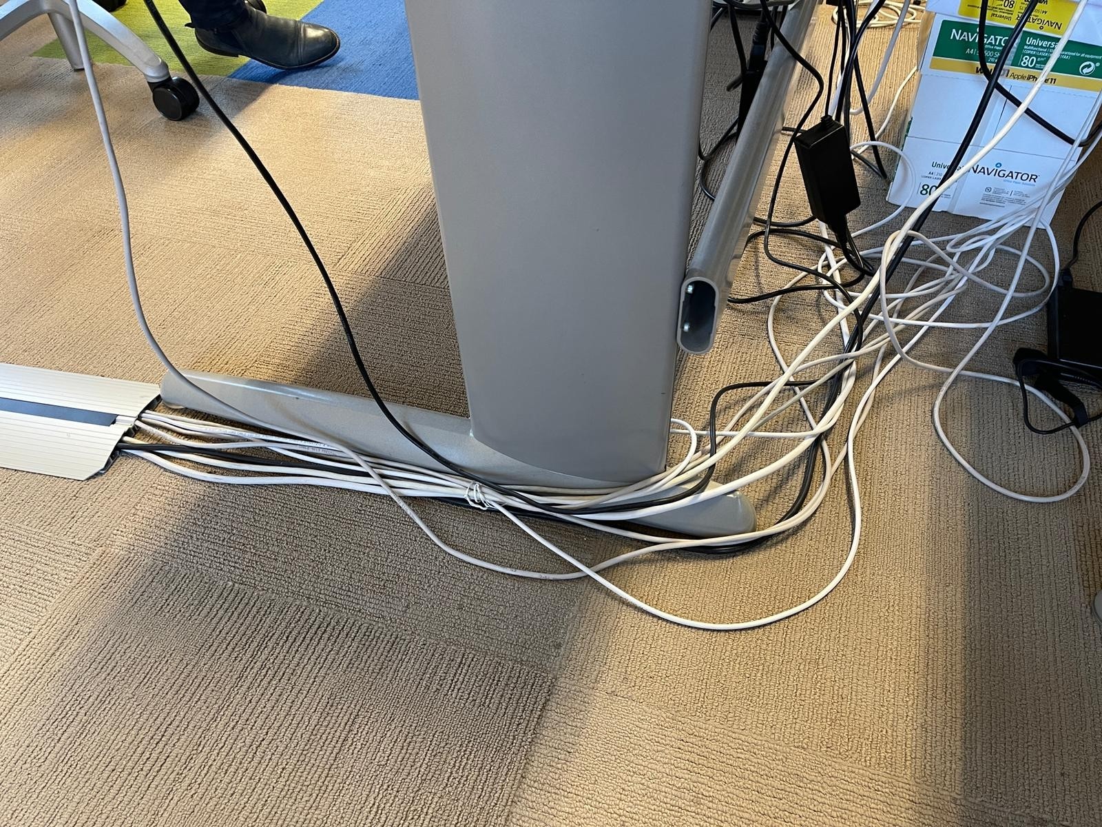 Bij een relatie in Hilversum heeft Kantin in samenwerking met Thovip ergonomie de wirwaar van draden netjes opgeruimd. Hierbij zijn goedgekeurde stekkerblokken onder de bureau's aangebracht en tevens de kabels met clips bevestigd. Het voordeel hiervan is dat de ICT op een gemakkelijke manier weer draden kan verwijderen of aanbrengen. Ook de schoonmakers zijn blij, aangezien alles van de vloer is. Maar vooral de medewerkers zijn hier zeer content mee, ze zitten niet meer met hun voeten in de draden.