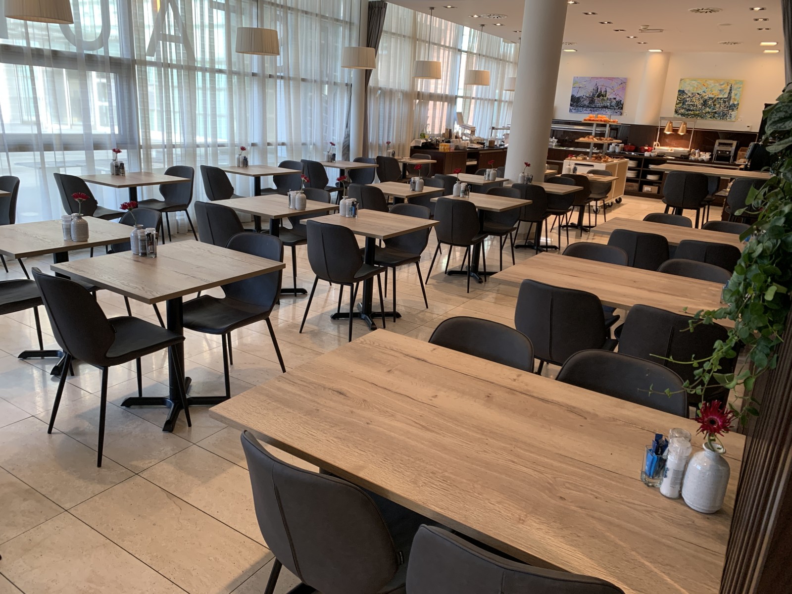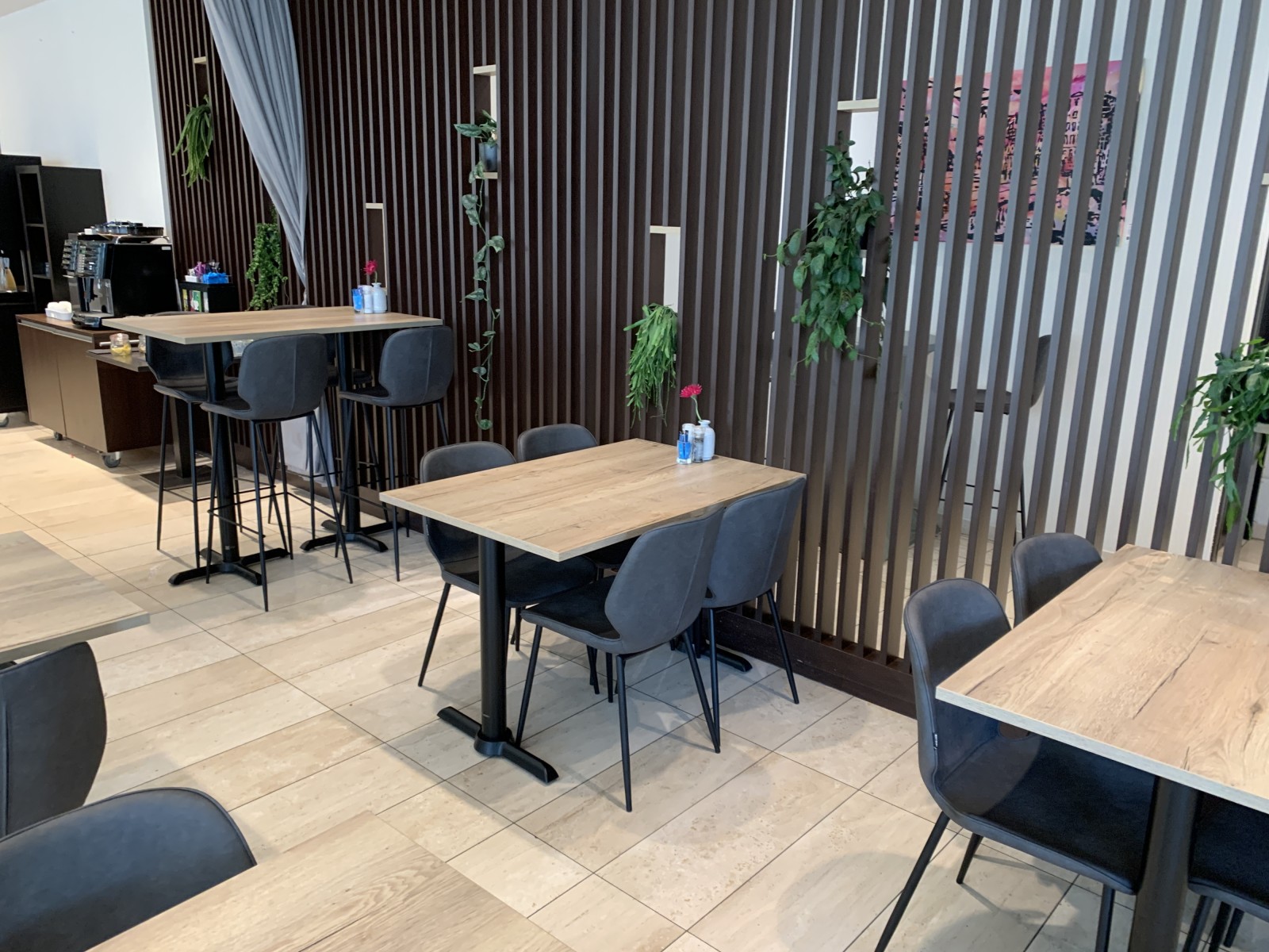 Voor NH Amersfoort heeft Kantin, het restaurant opnieuw mogen inrichten met tafels en stoelen. De bladen in Halifax houtmotief en de onderstellen mat zwart metaal geleverd. Tevens de bar aangepast met een nieuw barblad en voetensteun. De verlichting is van Slamp. Tevens de scheidingswand voorzien van vakken, waar we de planten in geplaatst hebben.