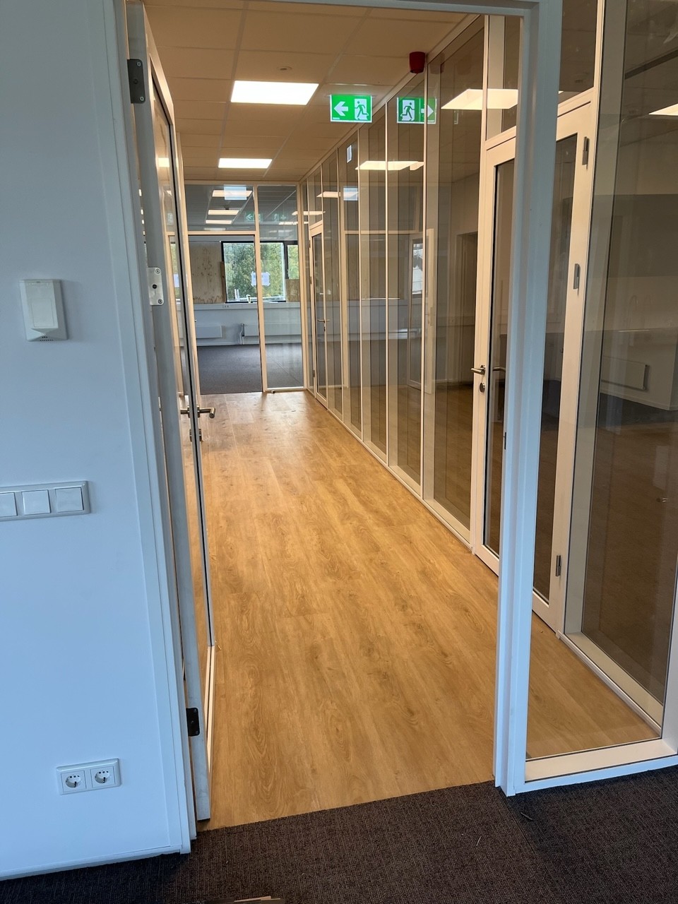 Daarnaast hebben we in de hal ontvangstzitjes gecreëerd, in nauwe samenwerking met Aannemersbedrijf Manten, Projectstoffering Utrecht, Schaffenburg Kantoormeubilair, Mobitec en Lightboxx. De kantoorruimtes zijn voorzien van vloertegels, terwijl de centrale ruimte is afgewerkt met PVC. Ook hebben we zowel binnen als buiten zonwering geïnstalleerd.