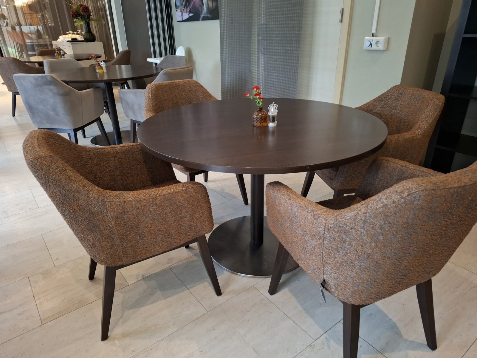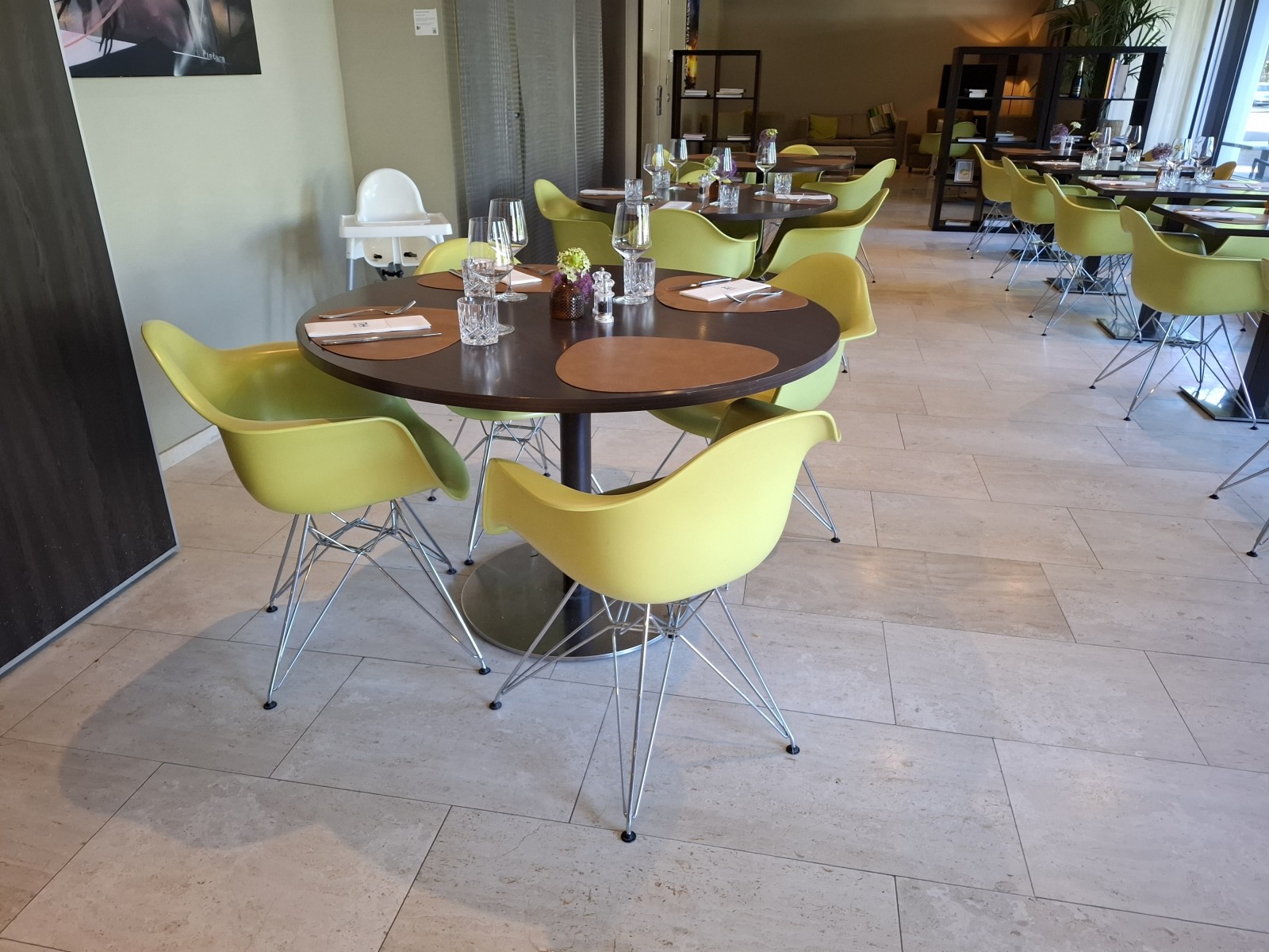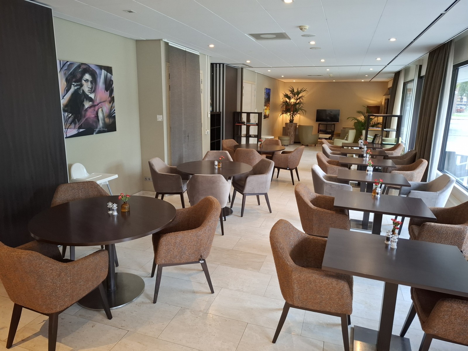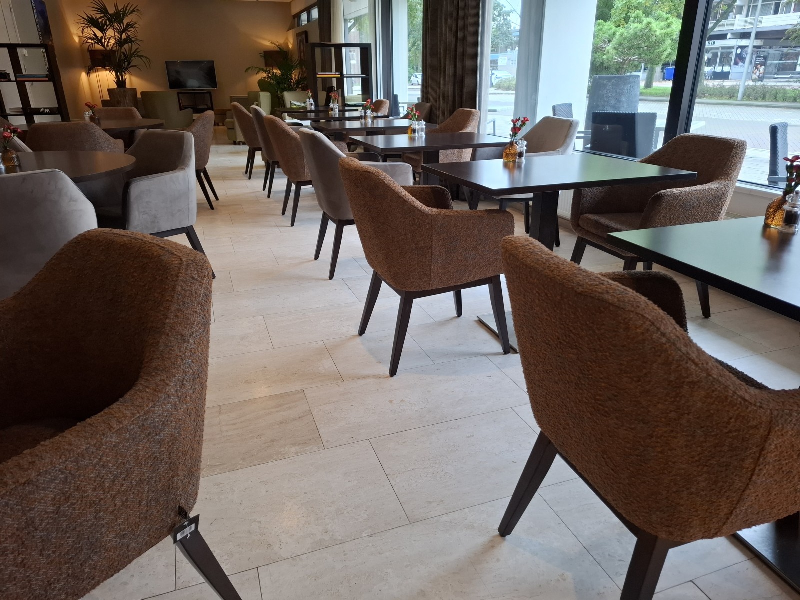 Bij een NH Hotel de stoelen mogen vernieuwen voor het restaurant gedeelte. De nieuwestoelen zijn de Volvere van Dome Deco. De eerste foto is de oude situatie.