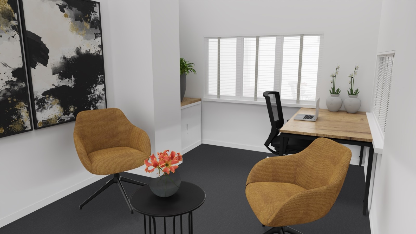 Kleuren en decoratie: Kies een kleurenschema dat past bij de bedrijfsidentiteit en zorg voor decoratieve elementen die de ruimte aankleden en inspireren.